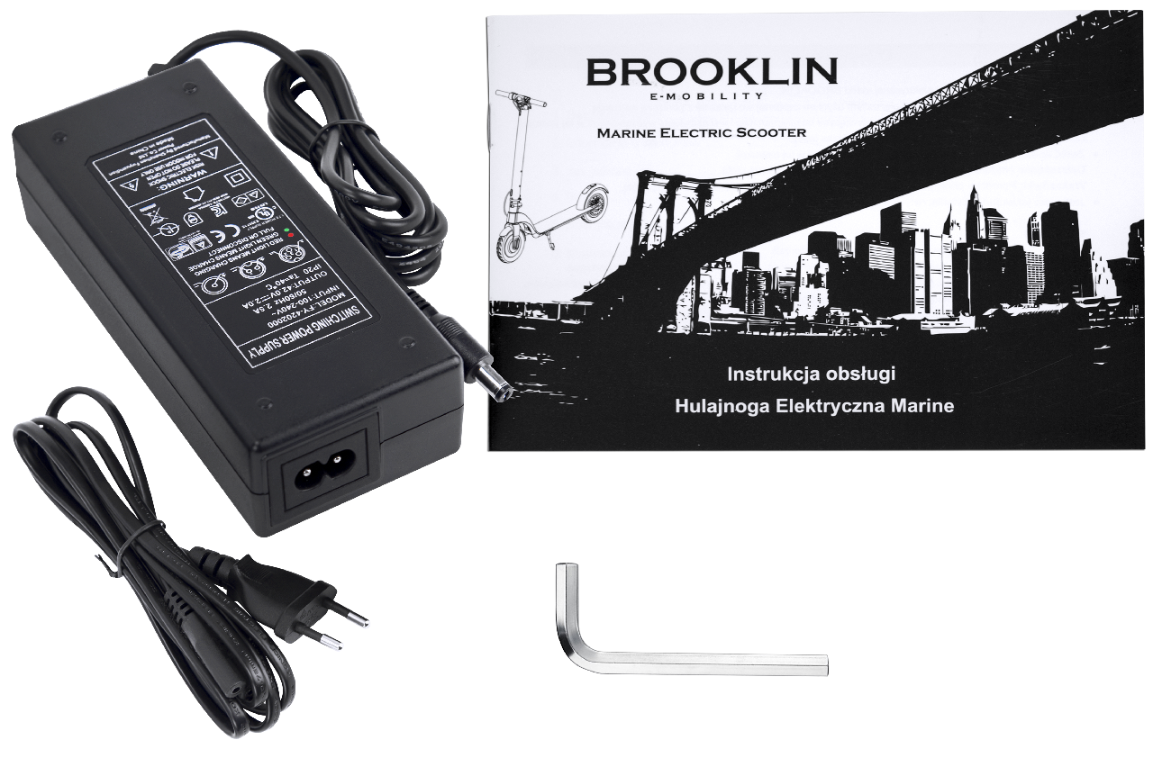 - Ładowarka: 42V /2A z funkcją oszczędzania baterii, po tym, gdy hulajnoga zostanie naładowana, ładowarka się wyłącza