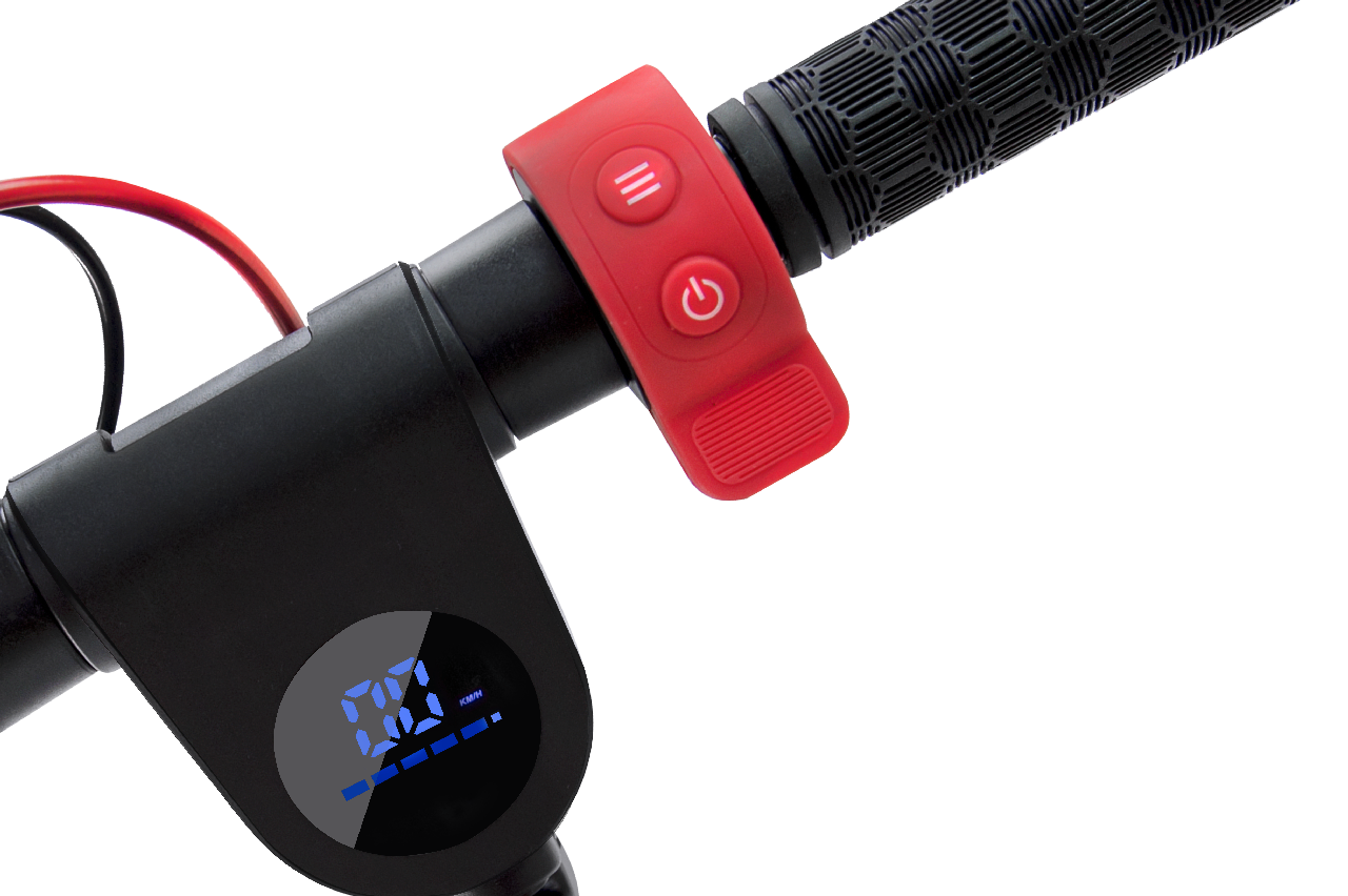- Wyświetlacz LCD (wyświetla prędkość z jaką się poruszamy)