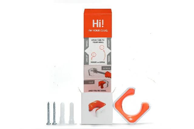 Clug tworzy dwuelementowa konstrukcja, wykonana z najwyższej jakości materiałów o niesamowitej wytrzymałości i trwałości. Każdy może go samodzielnie zamontować wystarczy wiertarka (śruby i kołki w zestawie). Dodatkowo pudełko, w którym kupujemy uchwyt ma jeszcze jedną funkcję – jest szablonem do montażu Cluga. Przykładamy je do ściany, wiercimy (pył wpada do pudełka, a nie na podłogę) i gotowe. Można wieszać rower.