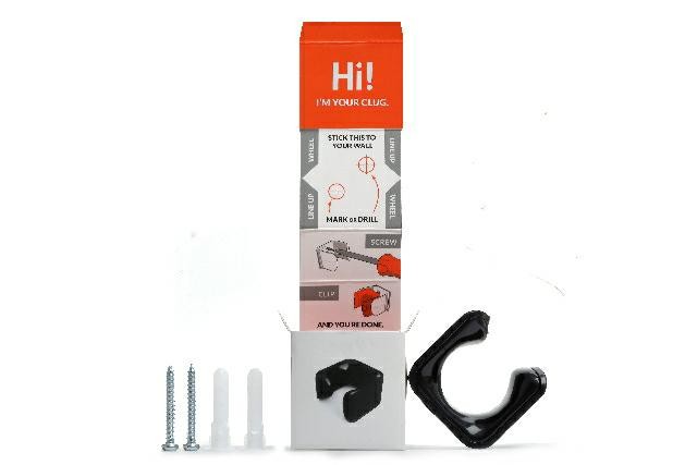 Clug tworzy dwuelementowa konstrukcja, wykonana z najwyższej jakości materiałów o niesamowitej wytrzymałości i trwałości. Każdy może go samodzielnie zamontować wystarczy wiertarka (śruby i kołki w zestawie). Dodatkowo pudełko, w którym kupujemy uchwyt ma jeszcze jedną funkcję – jest szablonem do montażu Cluga. Przykładamy je do ściany, wiercimy (pył wpada do pudełka, a nie na podłogę) i gotowe. Można wieszać rower.