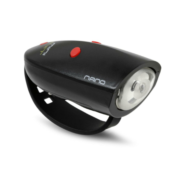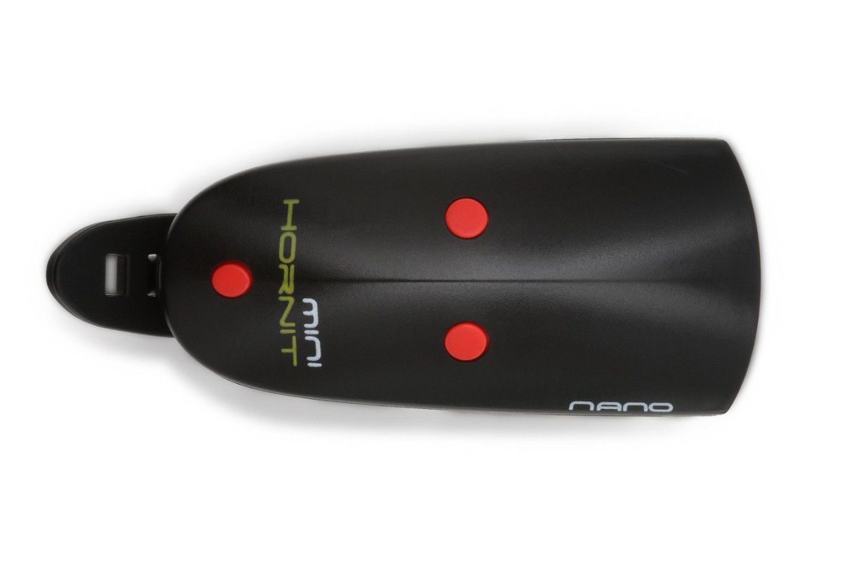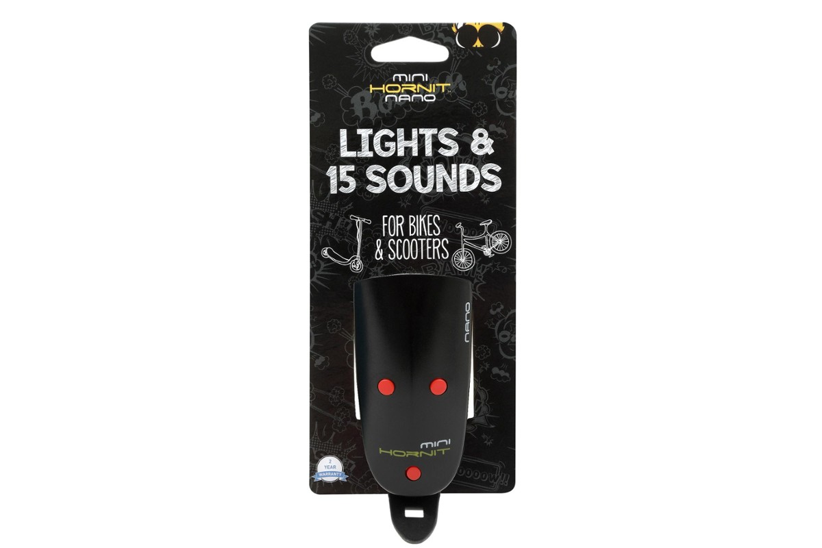 Imitator dźwięku i lampka w jednym. Do roweru, hulajnogi i na każdy inny dziecięcy pojazd. Mini Hornit Nano montuje się za pomocą silikonowego paska więc nie ma obaw, że nie będzie pasował. Za sterowanie odpowiadają trzy przyciski na obudowie. Światełko Mini Hornit Nano ma trzy tryby: stały, migający i szybko migający.