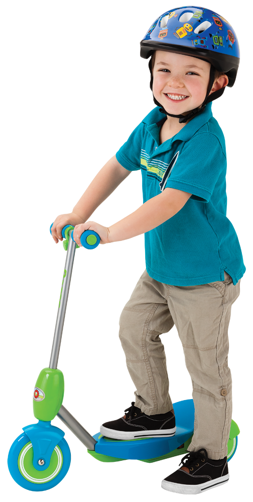 By uruchomić Razor Jr. Lil’e wystarcz, że dziecko wciśnie przycisk na kierownicy, nie trzeba się odpychać, ciągnąć, czy startować z górki. Zatrzymanie?