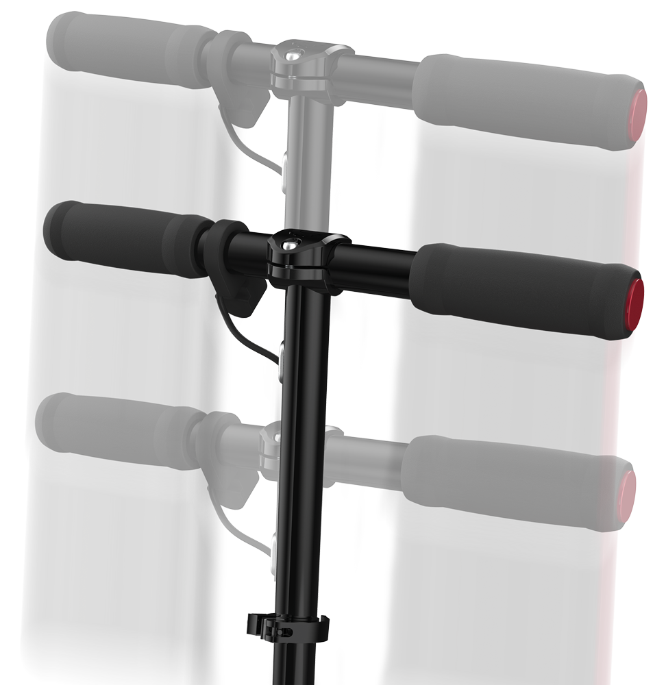 - Następnie trzeba dopasować wysokość hulajnogi do wzrostu dziecka (rączki w łokciach i nadgarstkach nie mogą być wyprostowane).